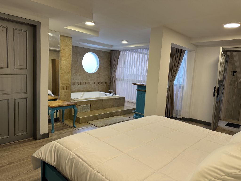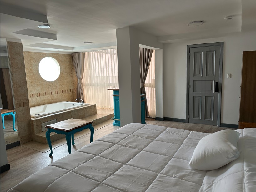 Lujosa y pensada para la máxima relajación, esta habitación con jacuzzi privado ofrece un espacio amplio y refinado donde el confort se eleva: cama king o matrimonial, zona de descanso, detalles de diseño y un jacuzzi exclusivo para desconectar y renovar energías; ideal para quienes buscan una experiencia memorable, íntima y con todos los extras que convierten una noche en un verdadero descanso de lujo.